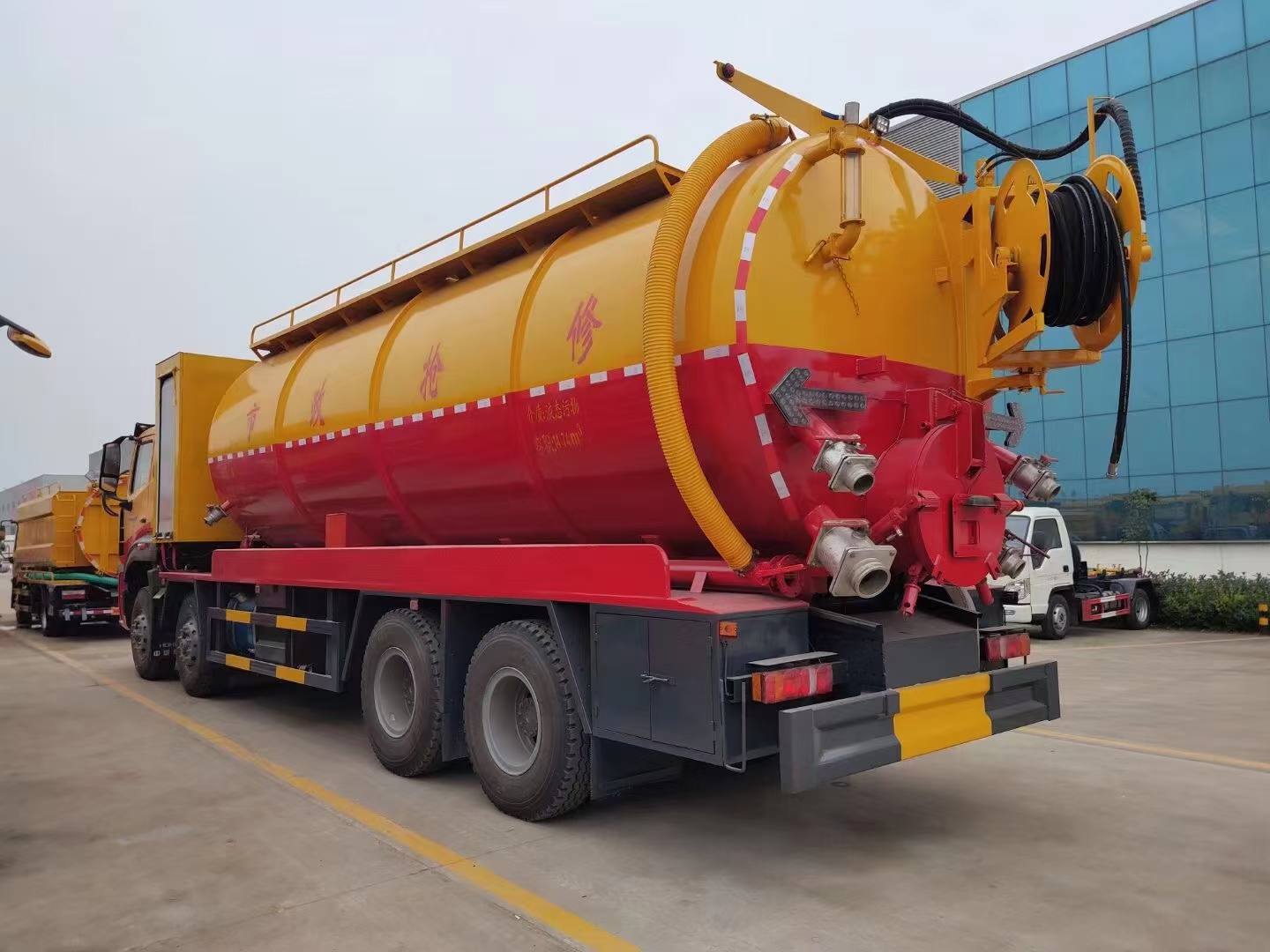 其它 | 該車(chē)專(zhuān)用裝置主要為污水罐和清水罐,用于下水道吸污及疏通。罐體尺寸(直段長(zhǎng)×直徑)(mm):7100×2350,其中罐體前端為清水罐(直段長(zhǎng)3100mm);后端為污水罐(直段長(zhǎng)4000mm)。兩罐獨(dú)立,且不能同時(shí)滿(mǎn)載。清洗功能時(shí)用清水罐,吸污功能時(shí)用污水罐。污水罐有效容積14.74立方米,介質(zhì):液態(tài)污物,密度:800千克/立方米;清水罐有效容積11.79立方米,介質(zhì):水,密度:1000千克/立方米。側(cè)、后防護(hù)材料均為Q235,焊接。后防護(hù)截面尺寸320×60mm,下邊緣離地高490mm。選裝罐體頂部護(hù)欄樣式,選裝側(cè)面清洗管,選裝后罐口液壓開(kāi)啟樣式,選裝后部閥門(mén),選裝后部清洗管卷盤(pán)樣式。隨底盤(pán)選裝半高頂駕駛室、選裝晝間行駛燈、選裝油浴式空濾器。ABS系統(tǒng)型號(hào)為446 004 6300,生產(chǎn)企業(yè)為威伯科汽車(chē)控制系統(tǒng)(中國(guó))有限公司。 |